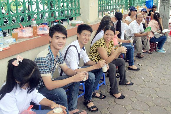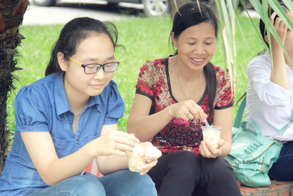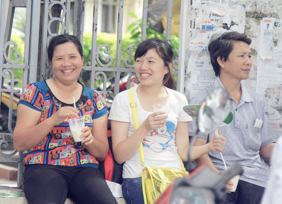 "Con thi, bố mẹ sốt ruột ngồi ngoài rất mệt mỏi nên thật sự xúc động khi được nhận bát tào phớ này. Xin cảm ơn các bạn trẻ"