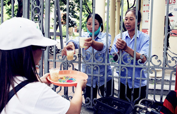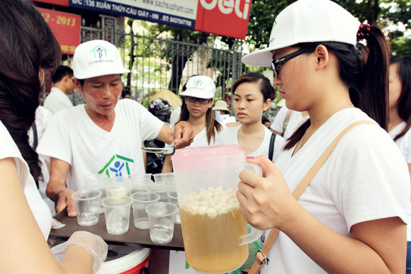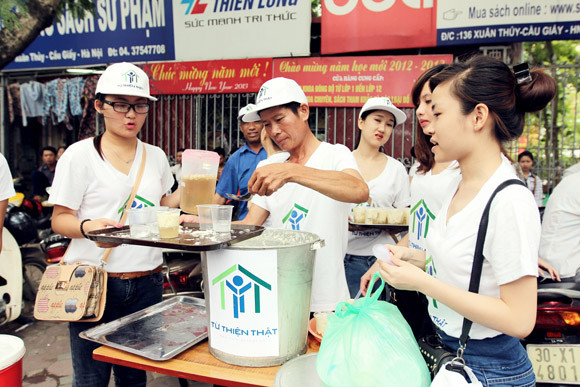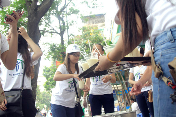 Nhận được cốc tào phớ từ tay tình nguyện viện hội Từ thiện thật,