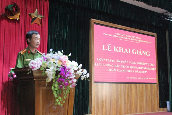 Tại buổi khai giảng lớp tập huấn, Đại tá Vũ Minh Phương- Trưởng Công an quận Thanh Xuân phát biểu: “Lớp tập huấn sẽ cung cấp những kiến thức cơ bản, thông tin cần thiết nhất cho lực lượng bảo vệ . Qua đợt tập huấn, các lực lượng bảo vệ có điều kiện giao lưu, trao đổi thông tin, học hỏi kinh nghiệm và gắn kết, cùng lực lượng Công an quận Thanh Xuân thực hiện tốt nhiệm vụ giữ gìn an ninh trật tự”.