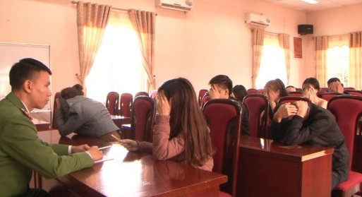 Cơ quan Công an ghi lời khai của số đối tượng "bay lắc" trong quán karaoke