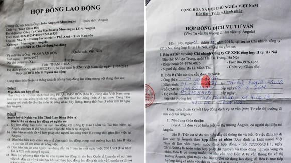 Tất cả số lao động mà chúng tôi có dịp tiếp xúc khi được hỏi: Đâu là cơ sở để các anh nộp một khoản tiền lớn như vậy cho Nguyễn Văn Hà, tất cả đều đưa ra một bản hợp đồng mà nhiều người phải bó tay vì được viết toàn bằng tiếng… Bồ Đào Nha. Thậm chí, trong bản hợp đồng đó (sau khi dịch ra tiếng Việt) còn có một điều khoản hết sức… giời ơi. Đó là: Trong trường hợp phát sinh tranh chấp, hai bên sẽ ra tòa án Luanda giải quyết. Khi được hỏi, tòa án Luanda ở đâu thì mọi người đều… mù tịt. Tóm lại, người nông dân đã giao cả tiền bạc và tính mạng mình cho người khác để đi đến một phương trời xa lạ chỉ bằng niềm tin mà không hề có bất cứ ràng buộc nào mang tính pháp lý của Việt Nam. Cũng theo các nạn nhân của vụ việc này thì ở quê họ đã có hàng chục người ra đi theo cách như trên mà không hề gặp trở ngại nào. Với “miếng mồi” là công việc không quá vất vả, thu nhập bằng cả năm đi biển nên nó có sức hút rất lớn với người nông dân một nắng hai sương.