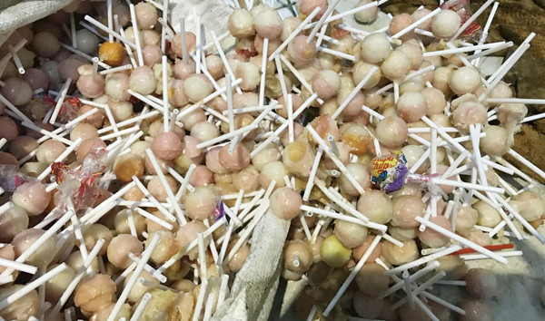 Bánh kẹo đựng trong bao tải đã bị chảy nước...