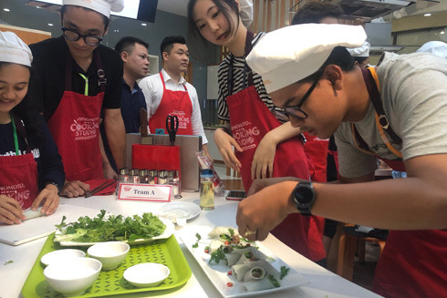 115 học sinh THPT là đại diện ưu tú đến từ 9 quốc gia Nhật Bản, Việt Nam, Trung Quốc, Indonesia, Malaysia, Thái Lan, Campuchia, Lào và Myanmar và Việt Nam theo Chương trình “nhà lãnh đạo trẻ châu Á” đã được tự tay hoàn thành món ăn khá nổi tiếng của Việt Nam tại Ajinomoto Cooking Studio - Trung tâm hướng dẫn và thực hành nấu ăn của Ajinomoto Việt Nam.