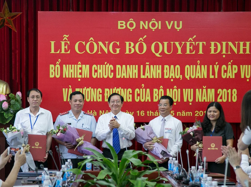 Bộ trưởng Bộ Nội vụ Lê Vĩnh Tân trao các Quyết định bổ nhiệm cho các cán bộ thông qua thi tuyển