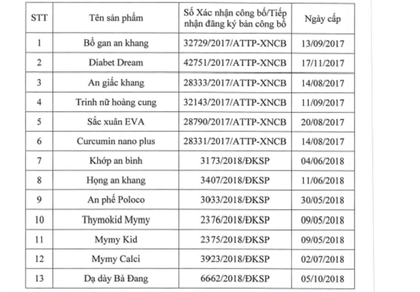 Cục An toàn thực phẩm (ATTP) vừa ban hành Quyết định số 1040/QĐ-ATTP về việc thu hồi hiệu lực giấy xác nhận công bố và Giấy tiếp nhận đăng ký bản công bố sản phẩm thực phẩm bảo vệ sức khỏe của Công ty cổ phần Quốc tế Dreamt Life Việt Nam (Khu ĐTM Văn Phú, Hà Đông, Hà Nội).