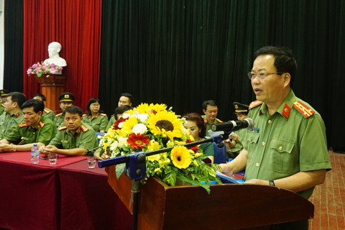 Đại tá Đoàn Ngọc Hùng, Phó Giám đốc CATP phát biểu khai mạc giải bơi