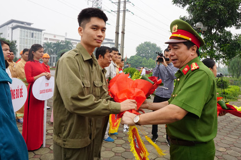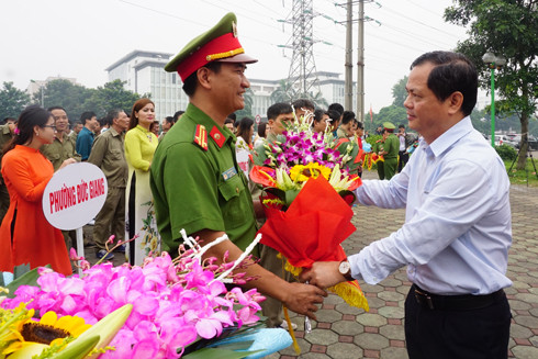 Đại tá Lê Mạnh Tuấn, Phó Giám đốc Cảnh sát PCCC tặng hoa chúc mừng các đơn vị tham gia hội thao