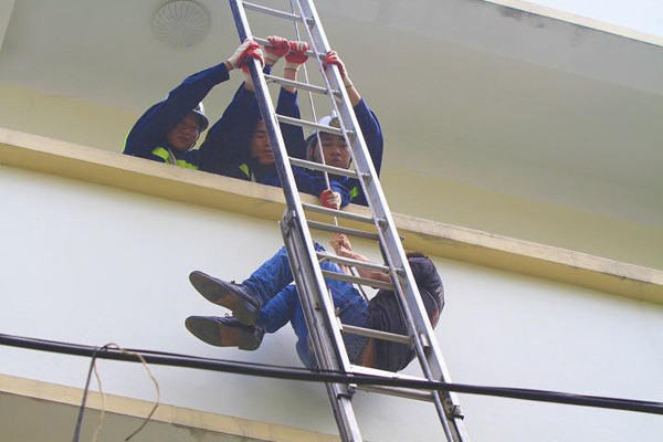 Diễn tập cứu nạn tại buổi diễn tập PCCC nhà tập thể B2 Ngọc Khánh