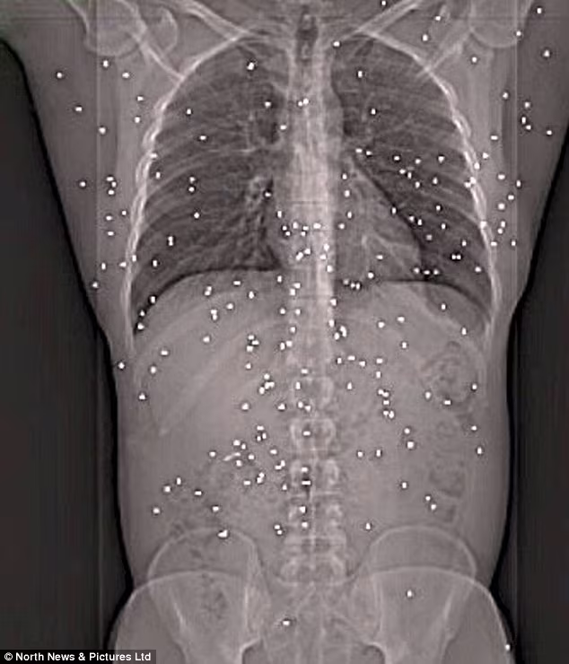 Qua kết quả chụp x-quang, các bác sỹ phát hiện có 150 viên đạn trong cơ thể của Joe Clark