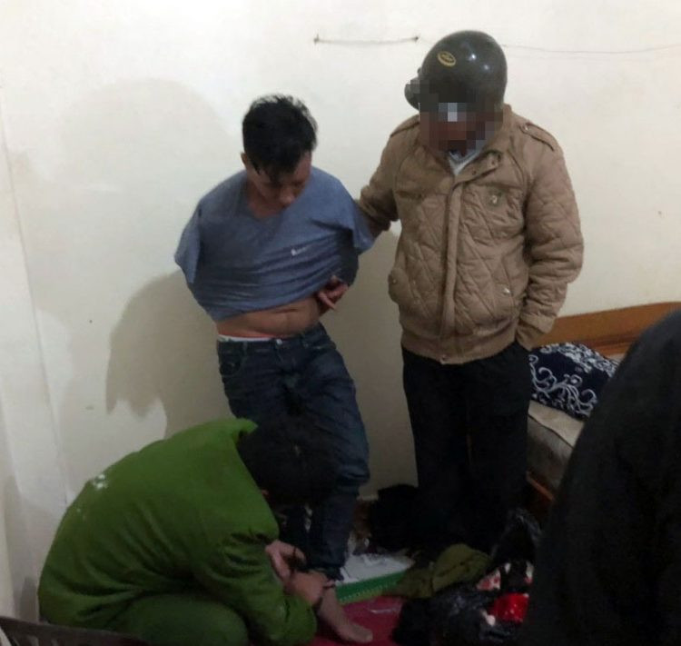 Các trinh sát hình sự khống chế Tạ Đình Phong (quần Jean, áo thun) tại phòng trọ