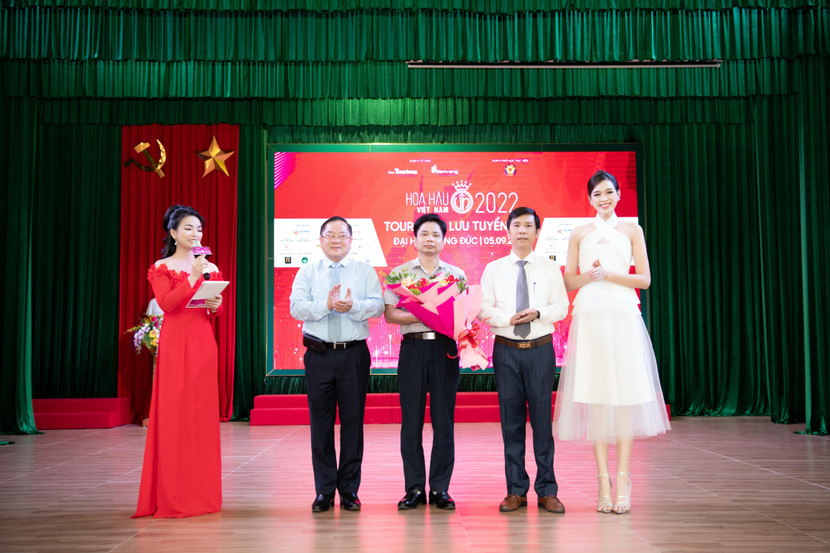 Tại buổi tuyển sinh đầu tiên, đại diện đơn vị tổ chức cuộc thi "Hoa hậu Việt Nam 2022", ông Lê Xuân Sơn - Trưởng Ban tổ chức và ông Vũ Tiến - Phó Trưởng Ban tổ chức cũng đã có mặt để chia sẻ cũng như giải đáp những thắc mắc của các sinh viên.
