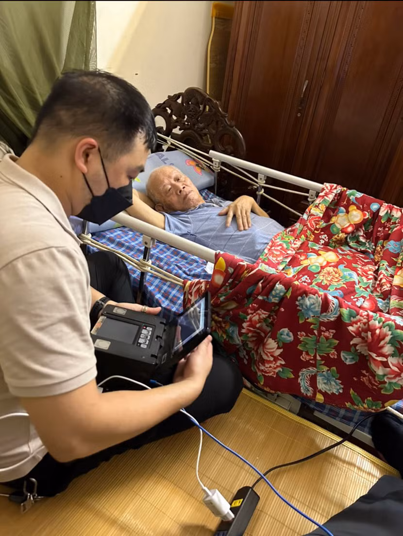 | Cán bộ Công an phường Yên Hòa "tác nghiệp" ngay trên giường của công dân cao tuổi |