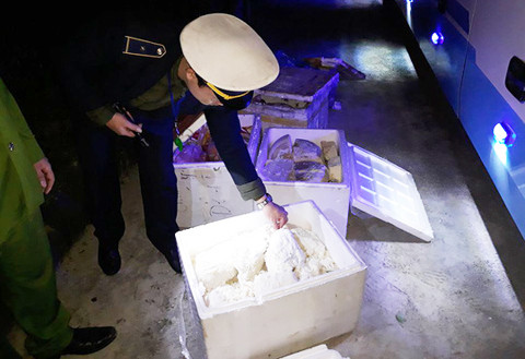 Theo đó, trong quá trình tuần tra, kiểm soát, vào khoảng 19h55 ngày 17-1, trên quốc lộ 1A đoạn qua phường Đậu Liêu, thị xã Hồng Lĩnh, Phòng Cảnh sát Môi trường, Công an tỉnh Hà Tĩnh phát hiện xe ô tô khách nhãn hiệu Hiếu Hoa mang biển kiểm soát TP Đà Nẵng có dấu hiệu nghi vấn đã phối hợp với Phòng CSGT và Công an TX Hồng Lĩnh tiến hành dừng phương tiện, kiểm tra.