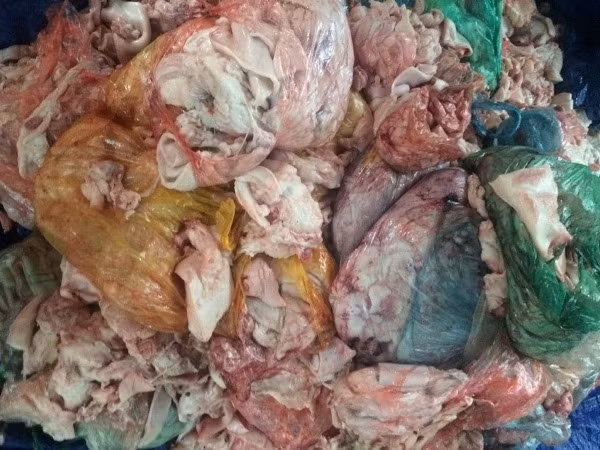 Số thực phẩm bẩn được thu mua để bán cho cửa hàng chế biến pa tê, xúc xích