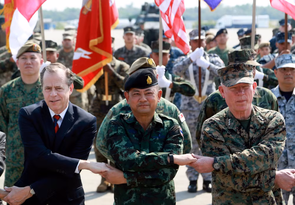 ANTD.VN -Ngày 13/2, cuộc tập trận mang tên Hổ mang Vàng (Cobra Gold) lần thứ 37 đã bắt đầu tại Thái Lan với sự tham gia của hơn 11.000 binh sĩ đến từ hơn 29 quốc gia, trong đó có Mỹ, Singapore, Hàn Quốc, Indonesia, Nhật Bản, Trung Quốc và Malaysia... Đây là cuộc tập trận đa quốc gia lớn nhất khu vực châu Á-Thái Bình Dương.