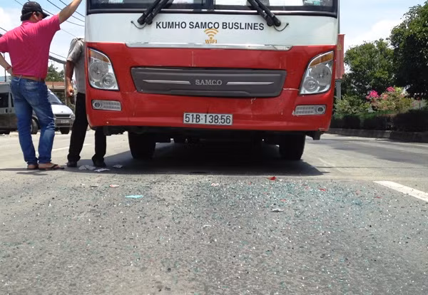 Kính chắn gió bể nát, vương vãi khắp mặt đường