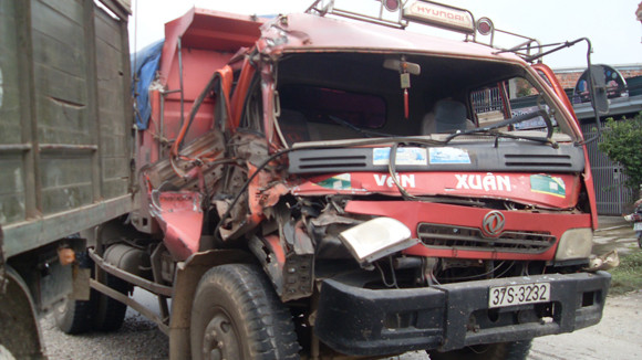 Không ngờ từ phía sau, chiếc ô tô tải đi cùng chiều BKS 37H 7718 do lái xe Hồ Văn Hậu (SN 1974, thường trú huyện Quỳnh Lưu) điều khiển chở hơn 2 tấn đá ngô, đi với tốc độ cao, gặp sự cố bất ngờ xử lý không kịp đã đâm thẳng vào đuôi xe ca khiến xe ca "bay" đi khoảng 10 mét, hàng chục hành khách trên xe kêu to hoảng sợ vì bị dồn đột ngột. Chưa hoàn hồn thì chính chiếc xe tải này lại bị xe tải khác BKS 37S 3232 do lái xe Nguyễn Đình Đa (SN 1985, trú huyện Quỳnh Lưu) điều khiển lao từ phía sau đến tông tiếp vào đuôi xe tải 37H 7718. Hậu quả làm cả ba xe dồn một cục, trong đó xe ở giữa BKS 37S 3232 bị hư hỏng nặng nhất và phụ xe bị thương.