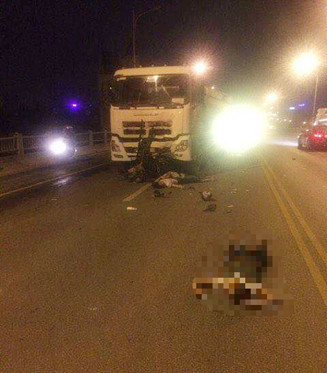 Hai nạn nhân nằm gầm xe bồn và 1 người văng ra xa (Ảnh otofun)