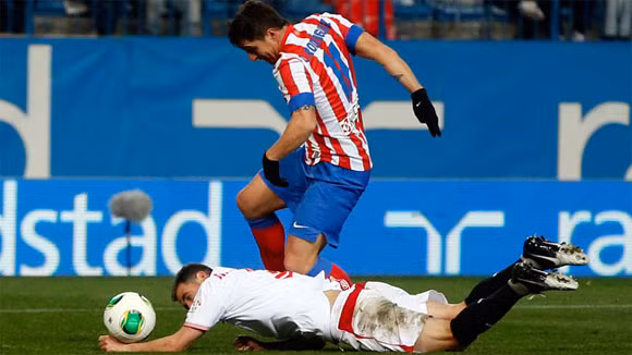 Tuy nhiên chỉ 7 phút sau, thế trận đã cân bằng trở lại khi tiền vệ người Uruguay của Atl Madrid dùng tay cản cú sút của Negredo. Godin bị thẻ đỏ trực tiếp còn Sevilla hưởng quả phạt đền. Chính Negredo sút thành công, gỡ hòa 1-1.