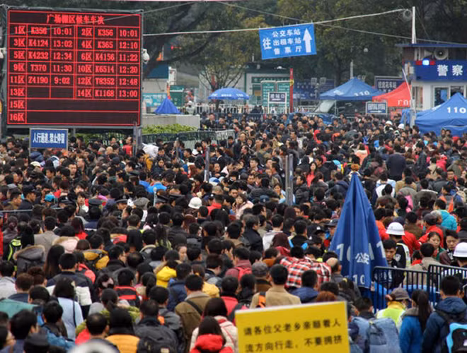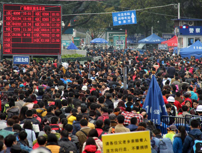 ANTD.VN - Trong vòng 40 ngày, từ 10-1 đến 18-2, Trung Quốc chứng kiến cuộc di dân lớn nhất hành tinh hàng năm với ước tính 3 tỷ lượt người đi lại trong dịp Tết Nguyên đán. Các phương tiện xe lửa, máy bay, đường sá và phà lúc nào cũng tấp nập hành khách về quê ăn Tết cùng gia đình. Ở một đất nước rộng lớn như vậy, với dân số hơn 1 tỷ người, việc tổ chức đi lại dịp này là vấn đề đau đầu hàng năm đối với các sân bay và nhà ga.
