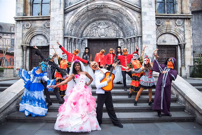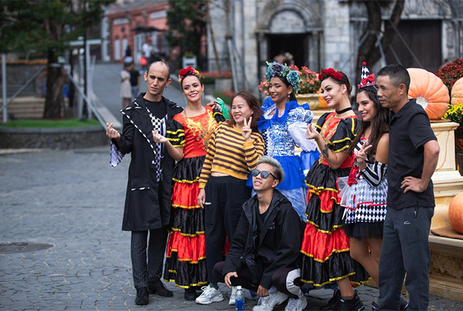 Du khách sẽ bị cuốn vào ngày hội Halloween với những khung cảnh huyền ảo, kỳ bí nối dài mãi bởi hai show nghệ thuật độc đáo diễn ra vào lúc 11h00 và13h00. Trong trang phục rực rỡ sắc màu và những chiếc mặt nạ ấn tượng, các nghệ sĩ làm sống động thêm ngày lễ truyền thống của châu Âu bằng những vũ điệu sôi nổi những cũng đầy ma mị, khiến du khách phấn khích tận hưởng trọn vẹn không khí Halloween đúng chất giữa không gian se lạnh nơi miền núi Chúa.