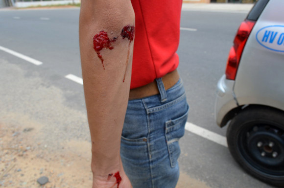 Chưa dừng lại ở đó, khi trên đường gần đến trụ sở UBND xã Nghĩa Thuận, huyện Tư Nghĩa thì anh Viên bị Tiễn đuổi theo ném đá. Thấy vậy, anh Công ra hỗ trợ cũng bị đối tượng côn đồ tấn công. Sau khi tấn công 4 phóng viên, đối tượng côn đồ đã lẩn trốn.