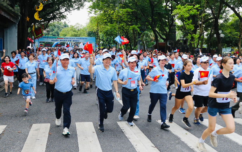 Tại chung kết cấp thành phố hôm nay, 1.000 người thuộc nhiều thành phần - bao gồm 250 người nước ngoài là cán bộ, nhân viên của 20 đại sứ quán, tổ chức quốc tế, trường quốc tế trên địa bàn Hà Nội - tham gia chạy hưởng ứng, cùng 3.000 vận động viên tranh tài ở 8 nội dung phong trào và nâng cao.