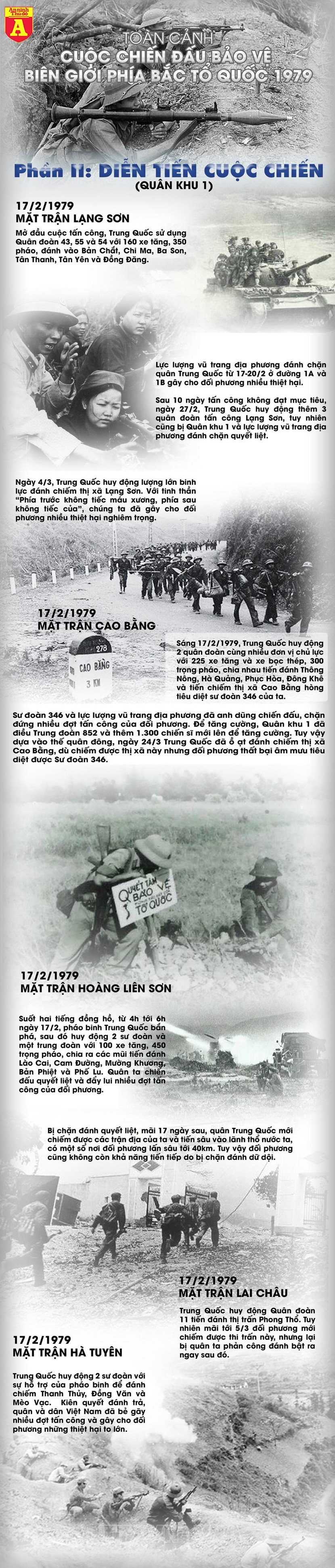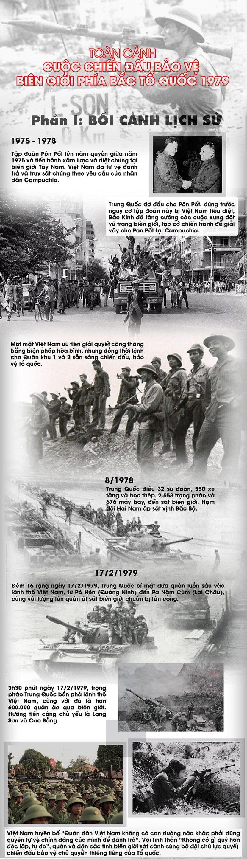 Vào 3 giờ 30 phút rạng sáng 17-2-1979, quân Trung Quốc sử dụng pháo binh bắn phá một số mục tiêu trong lãnh thổ của nước ta, sau đó huy động 600.000 quân, trên 500 xe tăng, xe bọc thép, hàng nghìn khẩu pháo các loại tấn công toàn tuyến biên giới Việt Nam dài hơn 1.400km.