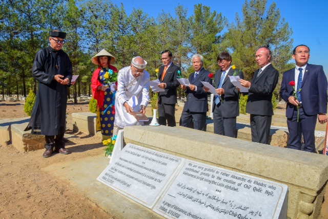 Lễ dâng hương và đặt bia trên mộ của giáo sỹ Alexandre đã diễn ra trong không khí trang nghiêm, thành kính. “Vinh danh chữ quốc ngữ chính là bảo tồn tiếng Việt, chính là bảo vệ đất nước Việt Nam mình”, GS Nguyễn Đăng Hưng khẳng định.