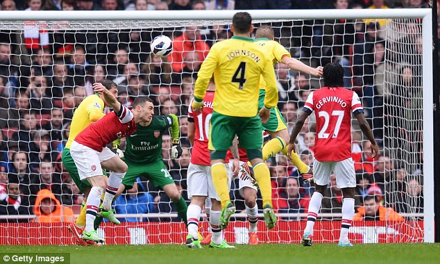 Do Chelsea bận thi đấu bán kết FA Cup với Man City nên Arsenal đã tranh thủ cơ hội để vươt mặt The Blues chiếm vị trí thứ ba trên bảng xếp hạng trong trận tiếp đón Norwich. Với lợi thế sân nhà, các pháo thủ thành London đã tràn lên tấn công áp đảo đội khách ngay từ đầu trận đấu.