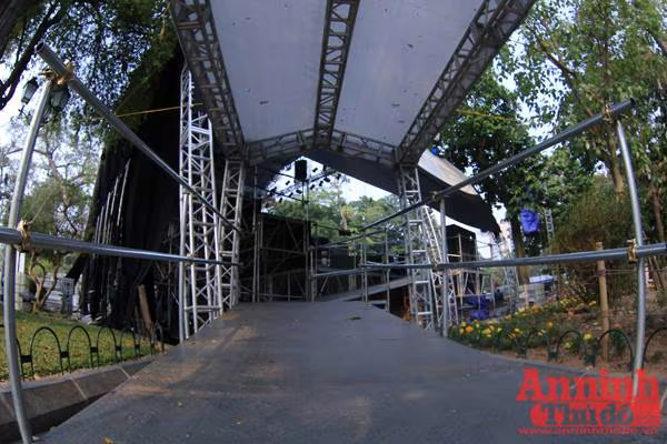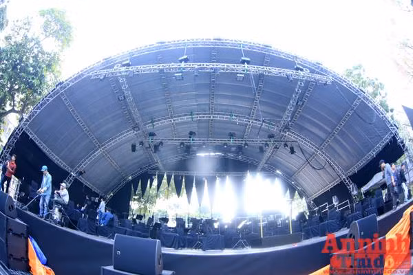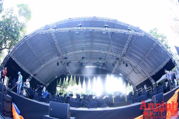 Sân khấu có mái che đằng sau và hai bên đảm bảo cho dàn nhạc biểu diễn trong điều kiện thời tiết bất lợi
