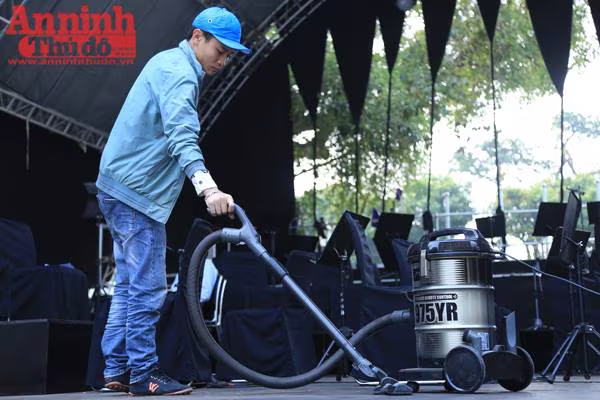 Mặt sàn sân khấu đang được làm sạch