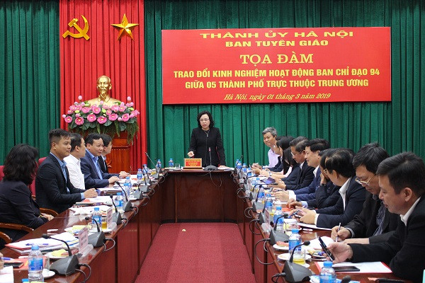 Chiều 1-3, tại Hà Nội, Ban Tuyên giáo Thành ủy Hà Nội đã tổ chức Hội nghị tọa đàm trao đổi kinh nghiệm về công tác tuyên giáo giữa Thủ đô Hà Nội và các thành phố trực thuộc Trung ương (gồm: TP Hồ Chí Minh, Đà Nẵng, Hải Phòng, Cần Thơ). Đây là hoạt động nằm trong chuỗi các hoạt động chào mừng kỷ niệm 70 năm Ngày thành lập Ban Tuyên giáo Thủ đô.
