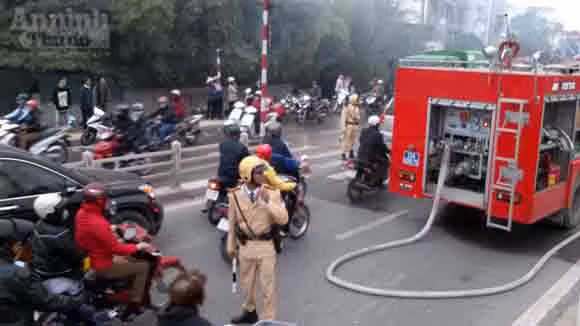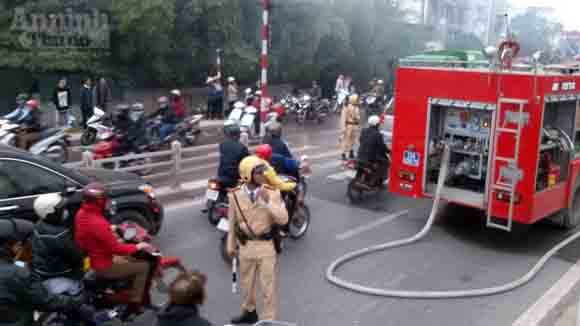 Vụ cháy xảy ra vào giờ tan tầm, nhiều người đi đường hiếu kỳ dừng xe theo dõi khiến giao thông khu vực này ùn ứ cục bộ
