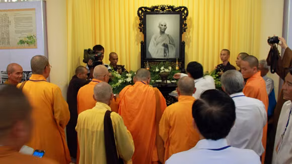 Bồ tát Thích Quảng Đức, sinh năm 1897, tại xã Vạn Khánh, huyện Vạn Ninh (tỉnh Khánh Hòa). Ngày 11-6-1963, tại cuộc diễu hành của 800 vị thượng tọa, đại đức, tăng ni, phật tử từ chùa Phật Bửu đến chùa Xá Lợi (Sài Gòn), khi đoàn đi đến ngã tư đường Phan Đình Phùng và Ngô Văn Duyệt (nay là đường Nguyễn Đình Chiểu và Cách Mạng Tháng Tám), bồ tát Thích Quảng Đức bước từ xe xuống, tẩm xăng lên người và tự châm lửa trước sự chứng kiến của hàng trăm phật tử đang chắp tay cầu nguyện. Mặc dù lửa cháy ngùn ngụt nhưng bồ tát Thích Quảng Đức vẫn chấp tay tĩnh tọa. Gần 15 phút sau, lửa tàn và bồ tát Thích Quảng Đức tiếp tục được đưa vào lò hỏa thiêu. Tuy nhiên khi thân thể bị thiêu rụi hết thì trái tim của bồ tát Thích Quảng Đức vẫn còn nguyên.