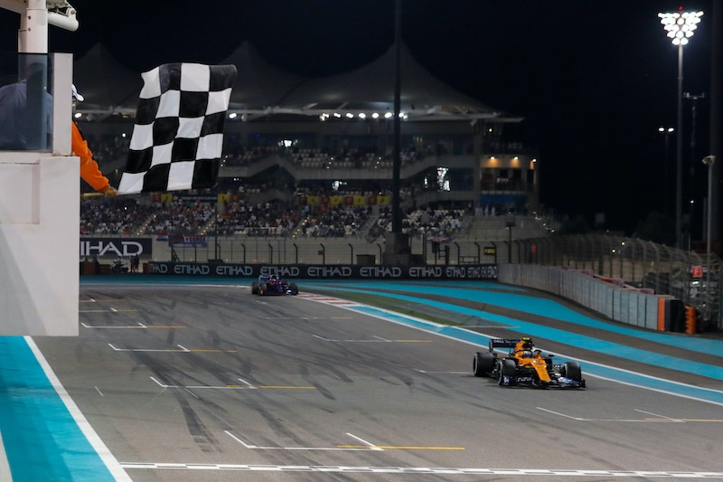 Năm ngoái, lá cờ caro đen trắng quen thuộc dùng làm tín hiệu kết thúc đường đua được F1 thay thế bằng tấm pano phát sáng hình caro đen trắng.