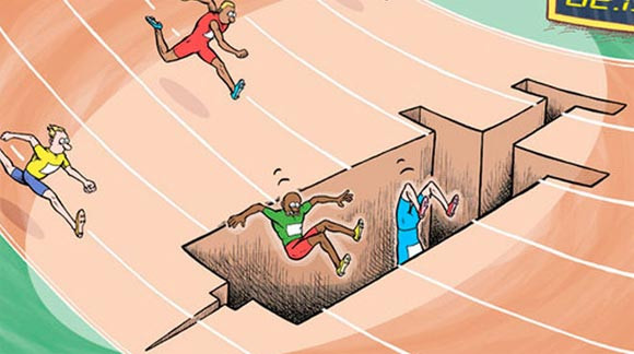 Biếm họa về việc các vận động viên chạy sử dụng chất kích thích - Ảnh: toolpool