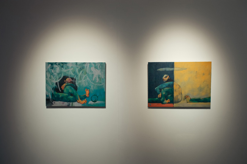 Một điểm nhấn khác đó là bộ tác phẩm của Hà Huy Hiệp, với chất liệu chủ yếu là sơn dầu. Là một người mù màu, anh quan sát môi trường xung quanh mình, cô đọng lại thành những hình khối qua tư duy hình thể, và khắc họa chúng lên bề mặt toan vẽ để tạo nên những tác phẩm có yếu tố điêu khắc trên bề mặt phẳng, tương phản cao, đơn sắc.