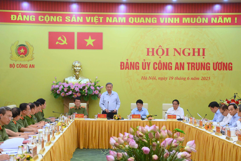 Tổng Bí thư Tô Lâm phát biểu chỉ đạo tại Hội nghị Đảng ủy Công an Trung ương 6 tháng đầu năm 2025.