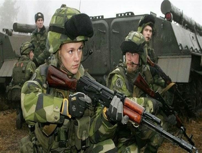 Ở Thụy Điển hiện tại mặc dù không có nguy cơ bị xâm lược, nhưng lực lượng quân đội luôn có sự chuẩn bị trước mọi kẻ thù. Sau khi tái cơ cấu, lực lượng quân đội giảm về số lượng nhưng có một đơn vị vẫn được duy trì với toàn bộ binh lính là nữ. Họ tham gia giải quyết nhiều lĩnh vực khác nhau, chủ yếu là hỗ trợ, chẳng hạn như tình báo hoặc hỗ trợ chiến đấu.