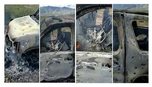 Chiếc xe ô tô bị thiêu rụi trong vụ thảm sát