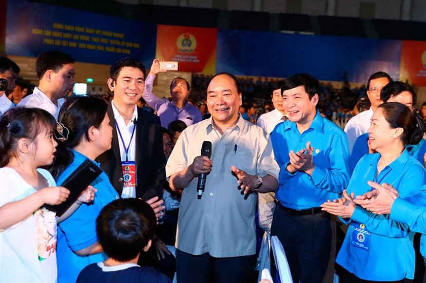 Thủ tướng Chính phủ Nguyễn Xuân Phúc đối thoại với công nhân các tỉnh vùng kinh tế trọng điểm miền Trung năm 2017