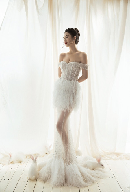 Chia tay năm 2016, Á hậu Hà Thu đã thực hiện bộ ảnh rất đẹp mắt trong những bộ dạ hội lộng lẫy của Nhà thiết kế Châu Phạm. Những chi tiết xuyên thấu cũng như những hạt đính kết tỉ mỉ đã giúp Hà Thu tôn lên vẻ đẹp của mình.