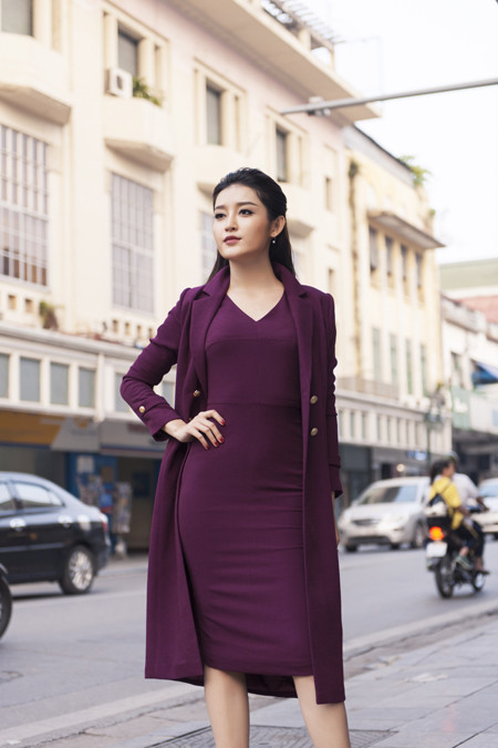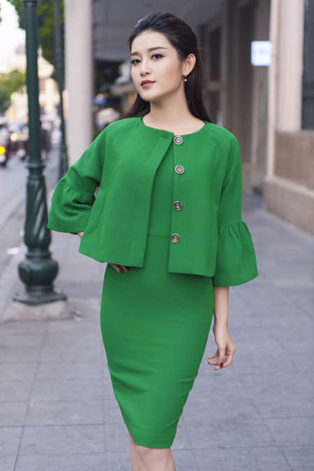 Với những bộ váy bút chì kết hợp các dáng áo khoác, NTK Helene Hoài đã “phù phép” biến Huyền My thành quý cô kiều diễm, tự tin trên phố đông. Gương mặt khả ái và chiều cao 1m72 cùng vóc dáng hoàn hảo của Á hậu Huyền My cũng mang đến một phong cách thời trang mới cho những thiết kế quen thuộc của NTK Helene Hoài.