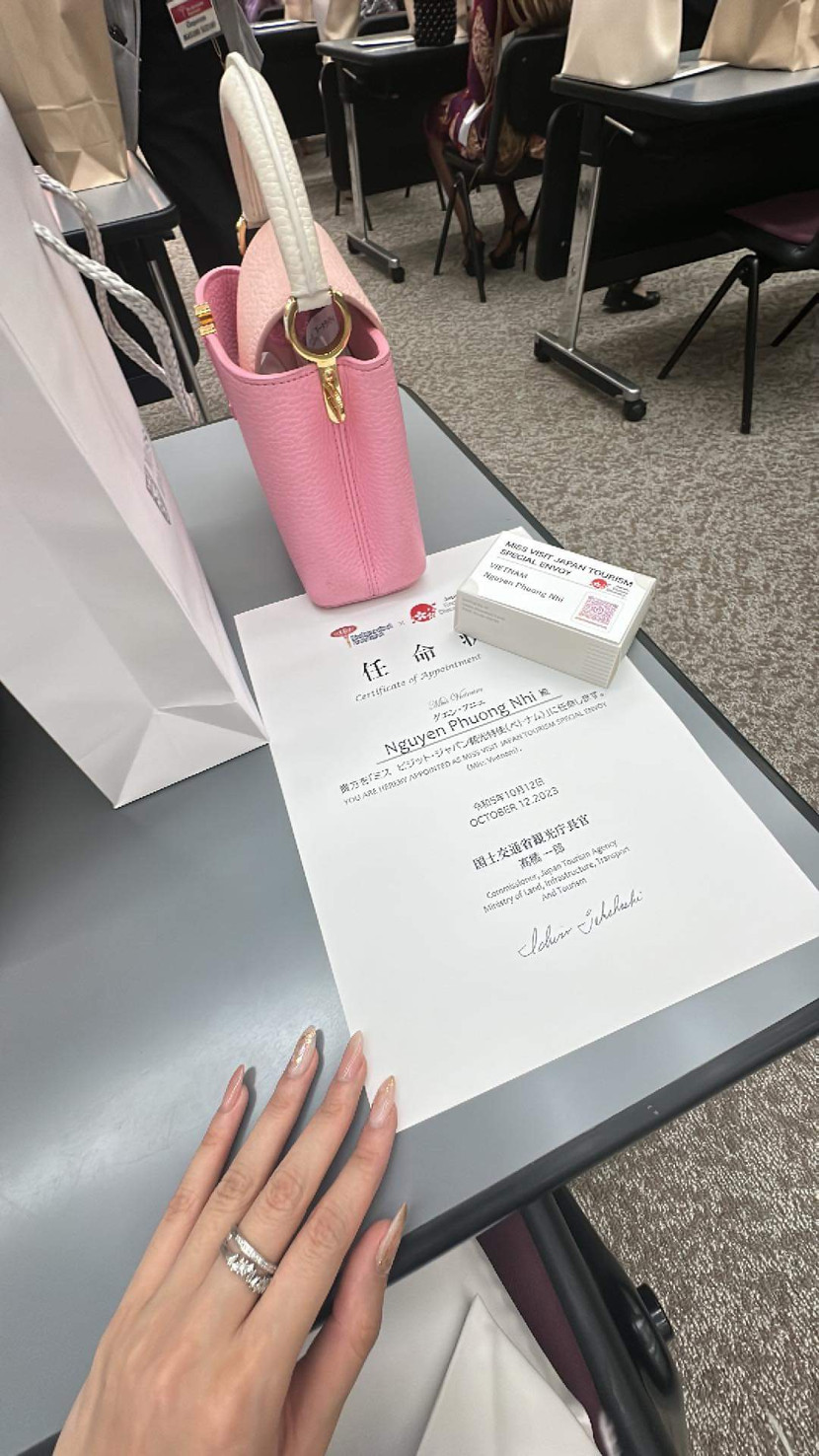 Theo đó mỗi năm, hội đồng sẽ đề cử 1 cô gái đại diện các nước lên nhận giấy chứng nhận "Miss Visit Japan" và lần này, Á hậu Phương Nhi là người được hội đồng thống nhất đề cử lên đại diện nhận cho tất cả các cô gái khác.