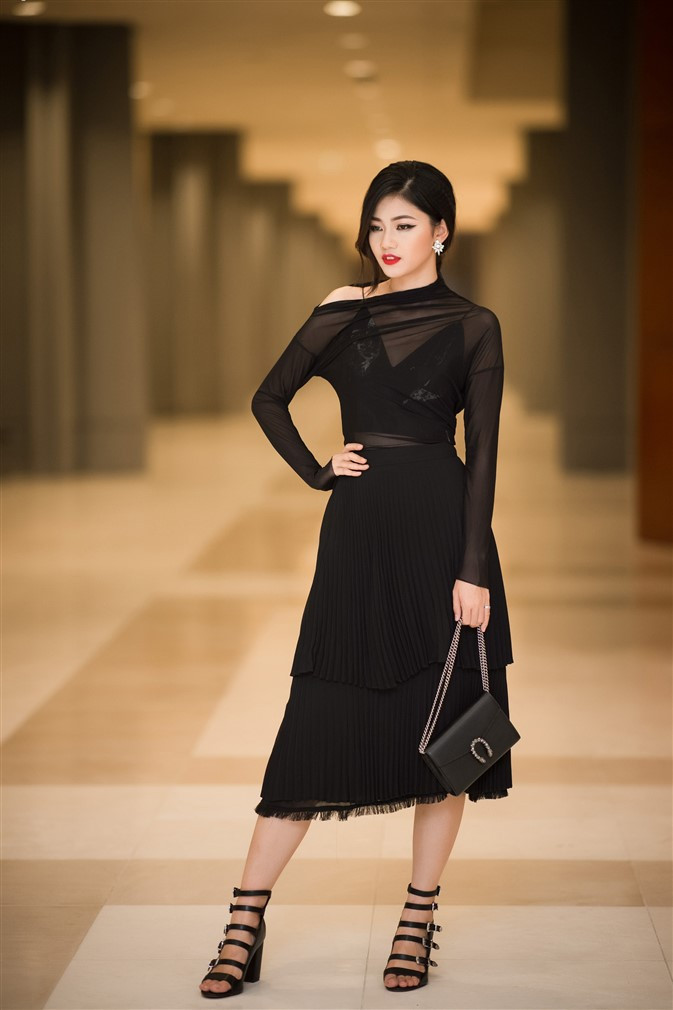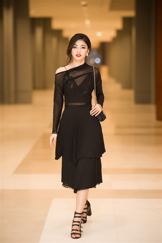 ANTD.VN - Á hậu Thanh Tú xuất hiện đầy sắc sảo và không kém phần bí ẩn với phong cách thời trang xuyên thấu.