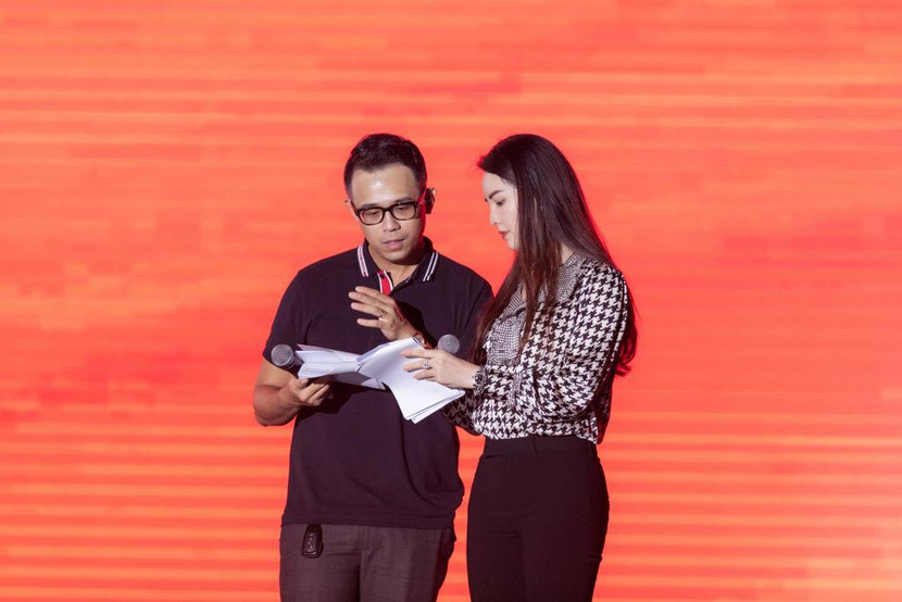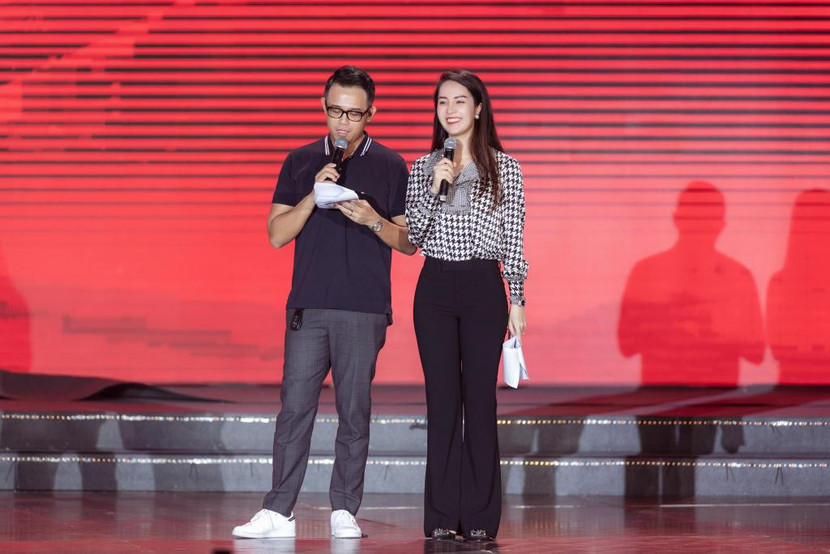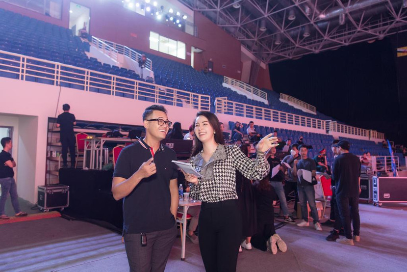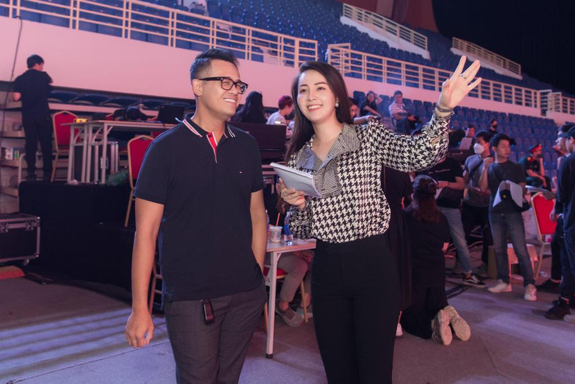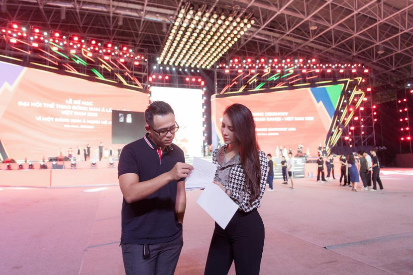 Một số hình ảnh của Á hậu Thụy Vân và MC Đức Bảo tại lễ tổng duyệt chương trình bế mạc SEA Games 31: