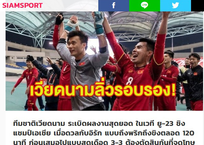Tờ Siam Sport ngưỡng mộ chiến tích vào bán kết châu Á của U23 Việt Nam