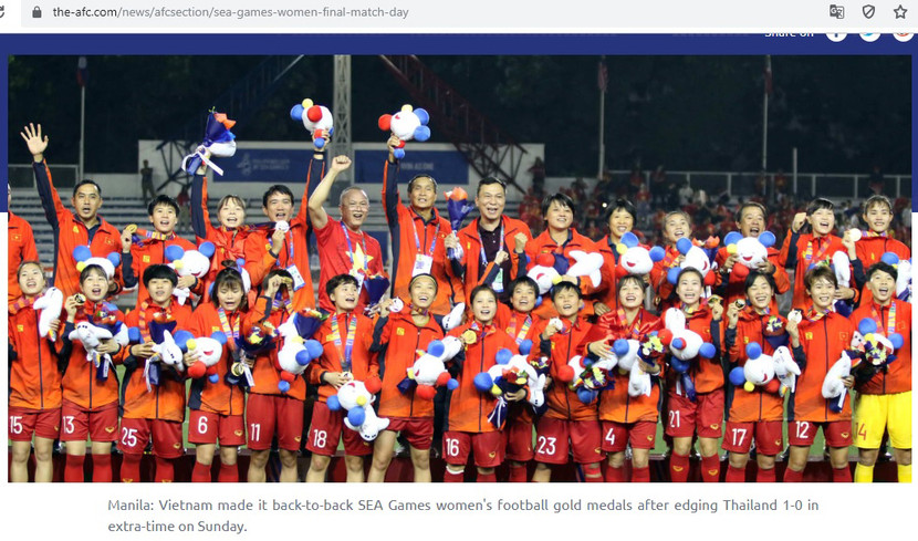 AFC có bài viết khẳng định tuyển nữ Việt Nam vô địch SEA Games xứng đáng