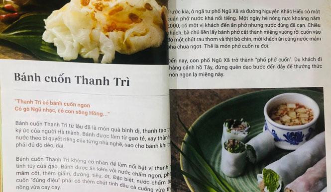 "Ẩm thực Hà Nội" tập hợp những bài viết, hình ảnh giới thiệu hơn 100 món ăn đặc trưng của Hà Nội cũng như tinh hoa ẩm thực cả nước và thế giới. Cuốn cẩm nang có cả phiên bản tiếng Việt và tiếng Anh, chia làm 4 phần, là câu chuyện của ẩm thực Hà Nội trong bức tranh chung của ẩm thực Việt Nam với nhiều lát cắt khác nhau.